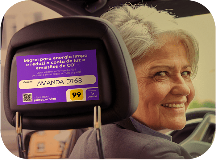 A 99 é uma empresa de tecnologia e, portanto, não comercializa ou gera energia elétrica, bem como não tem nenhuma relação com o contrato celebrado entre a Juntos Energia e o Contratante. A parceria entre a 99 e a Juntos Energia objetiva apresentar ao usuário 99 uma alternativa para reduzir os custos de energia elétrica por meio do uso de fontes sustentáveis de energia.