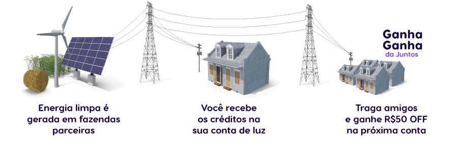 Se você quiser reduzir ainda mais os seus custos na conta de luz, traga amigos para a Juntos.