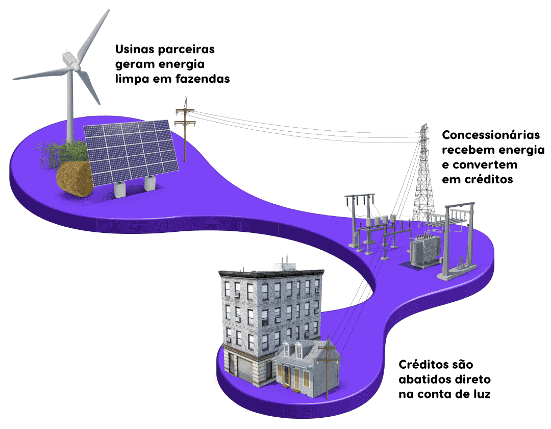 Conectamos produtores de energia limpa e sustentável a apartamentos, casas e empresas.